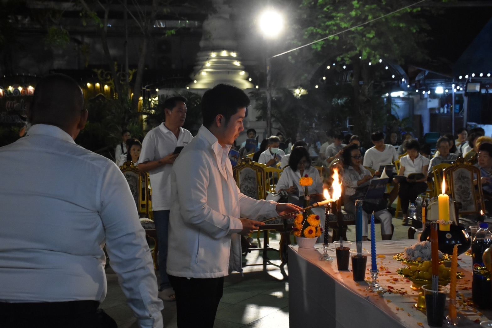 ด้วยการนั่งอยู่ท่ามกลางบทสวด เสียงธรรม และผู้คนรอบตัว