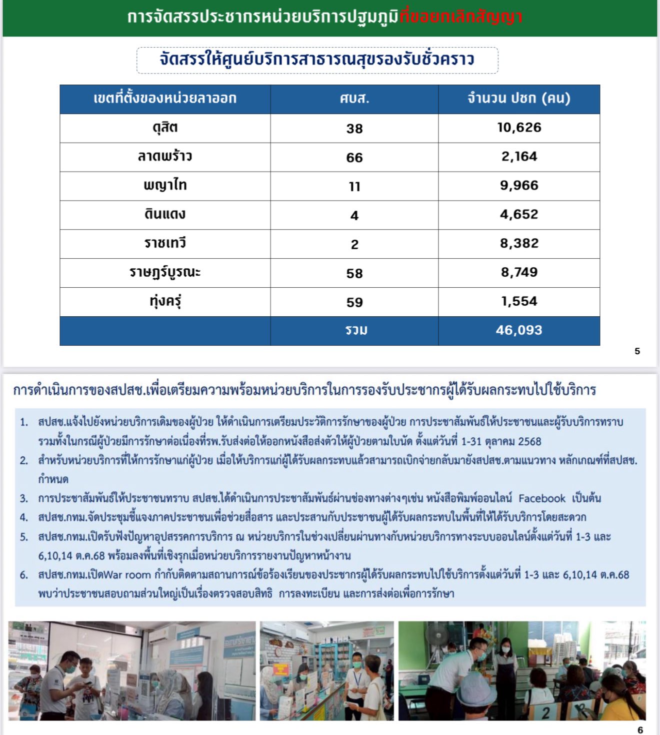 ตั้ง ศูนย์ประสาน One Stop Service รายโซน ให้คำปรึกษาและประสานการย้ายสิทธิของประชาชนในแต่ละพื้นที่